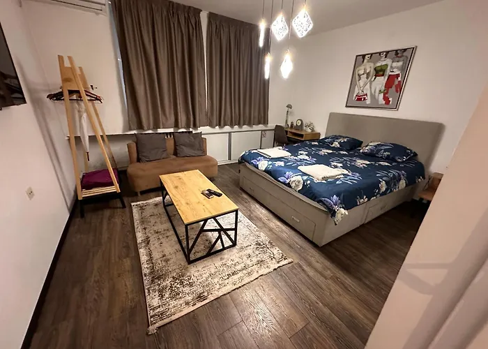 También dispone de una pequeña cocina equipada con un horno de microondas, un hervidor eléctrico y nevera. El restaurante Amigos ofrece comida mexicana y se encuentra a unos minutos andando de este establecimiento. El aeropuerto Internacional de Skopie está a 25 minutos en coche, y la parada de autobús City Hospital, a una distancia de 450 metros de este alojamiento.